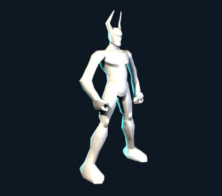 ront view of the Integer character mesh, with a white shader applied to clearly show the geometry of the model. Click the [1] link below to view the model with the images maps applied.